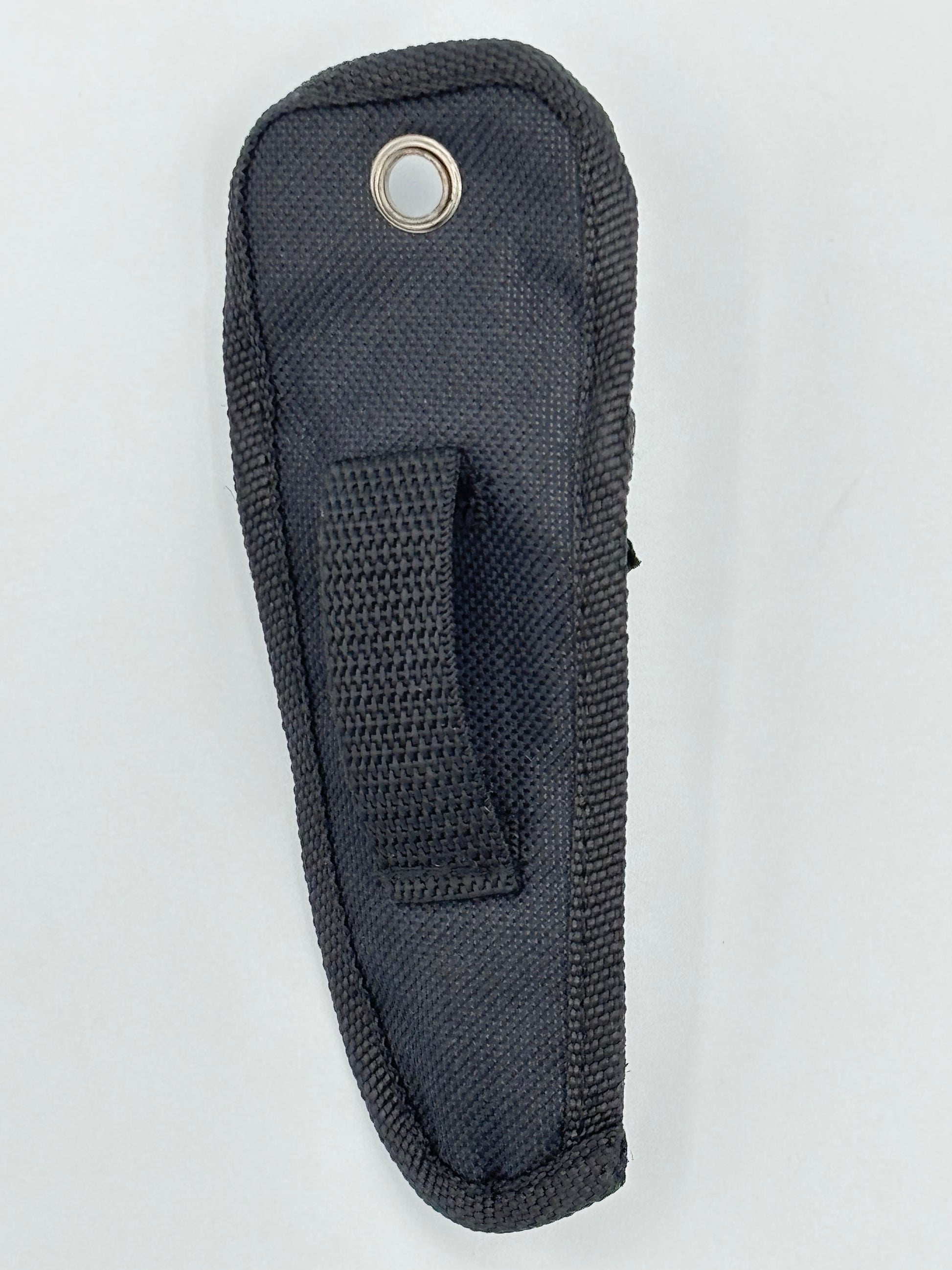 Viene con una fundita cómoda para fijarla al cinturón y un ojo en una de los mangos de la tijera, para poder cogerla a un cordón o elástico, para evitar la pérdida accidental de la tijera. Todos sabemos que lo que se cae al mar, es muy difícil de recuperar....