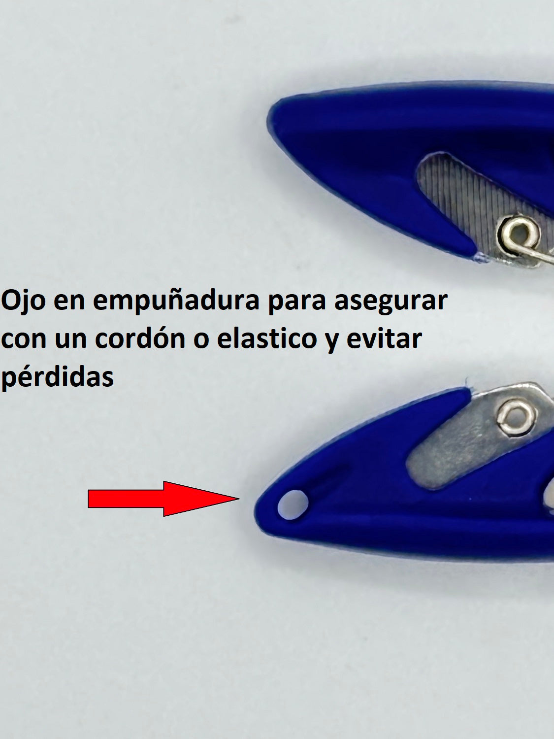La punta está diseñada para la apertura de anillas para cambio de poteras o anzuelos.