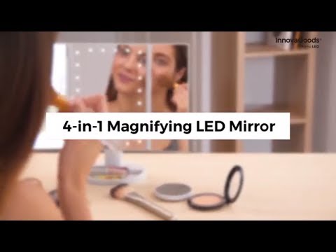 ESPEJO LED DE AUMENTO 4 EN 1 INNOVAGOODS. UN ESPEJO DE SOBREMESA MUY PRÁCTICO PARA MAQUILLARSE, PEINARSE, DEPILARSE, ETC., CON LA MÁXIMA PRECISIÓN Y COMODIDAD. FABRICADO EN ABS DISEÑO PLEGABLE, MODERNO Y FUNCIONAL, 24 LED DE LUZ BLANCA, RECLINABLE HASTA 360° VARIAS ZONAS DE AUMENTO (X1, X2 Y X3), ESPEJO ADICIONAL REDONDO CON VENTOSAS (APROX. 7,5x1cm – AUMENTO: X10), BASE EXTRAÍBLE CON ESPACIO PARA COLOCAR UTENSILIOS (PINZAS DE DEPILAR, PINTALABIOS, ETC.), INTERRUPTOR ON/OFF EN LA PARTE TRASERA, BOTÓN TÁCTIL DE ENCENDIDO Y APAGADO EN LA PARTE FRONTAL, FUNCIONA CON PILAS (4xAA, NO INCLUIDAS) O MEDIANTE CONEXIÓN USB (INCLUYE CABLE USB). MEDIDAS APROX.: 18x29x12cm.